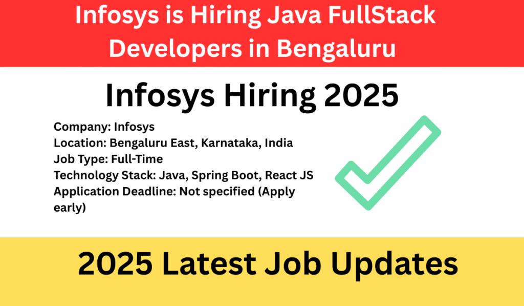 Infosys Hiring for Java FullStack Developers in Bengaluru, Karnataka. This opportunity is designed for skilled professionals who are passionate about